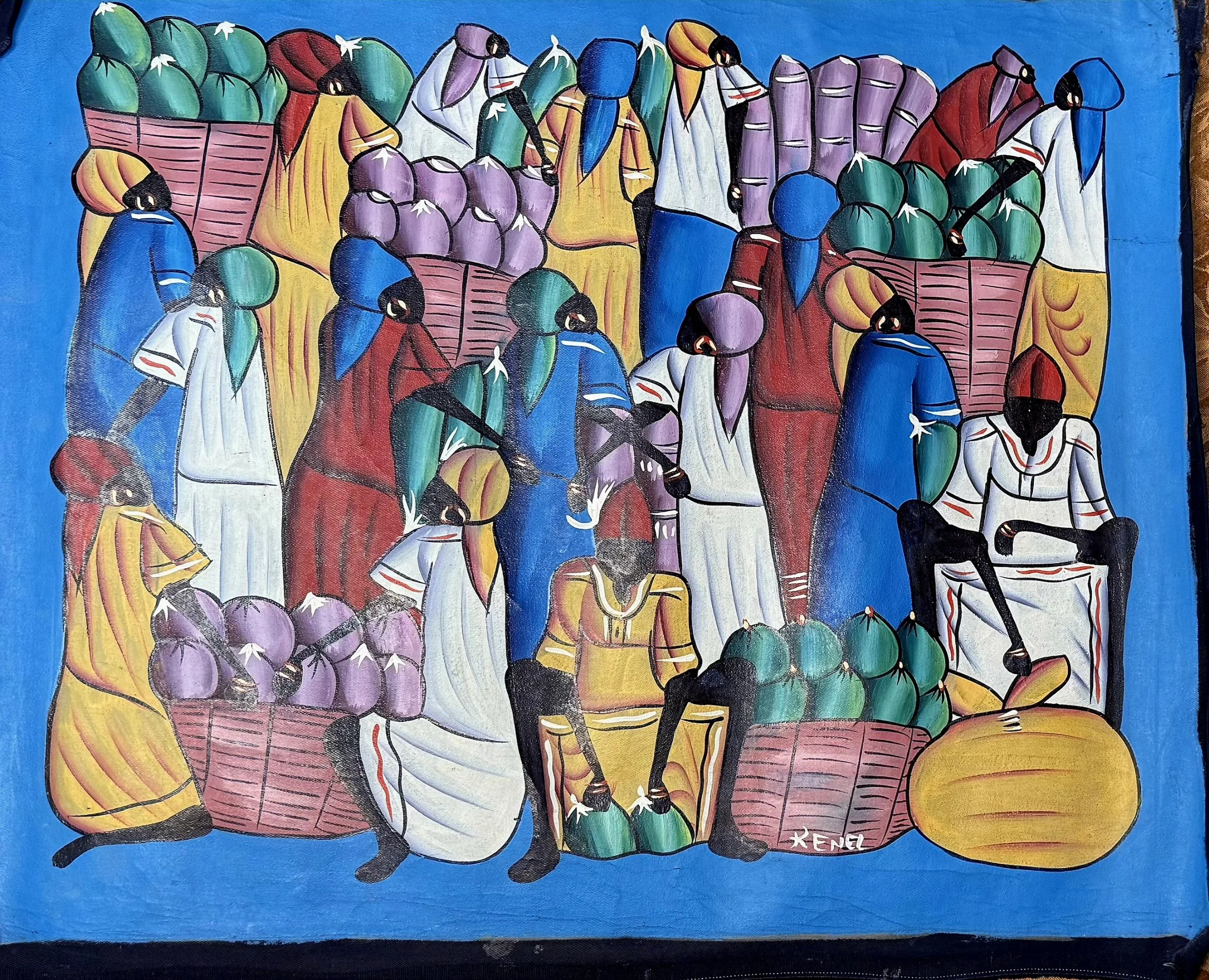These stunning Haitian paintings, rich with vibrant colors and cultural expression, captures the essence of Haiti’s marketplace life—community, resilience, and the beauty of daily living. Each stroke tells a story of togetherness, hard work, and hope, values that resonate deeply with the mission of supporting children in need.